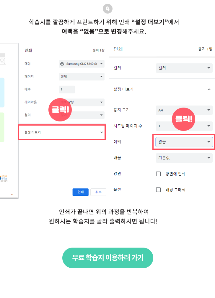 학습 프린트 인쇄 방법